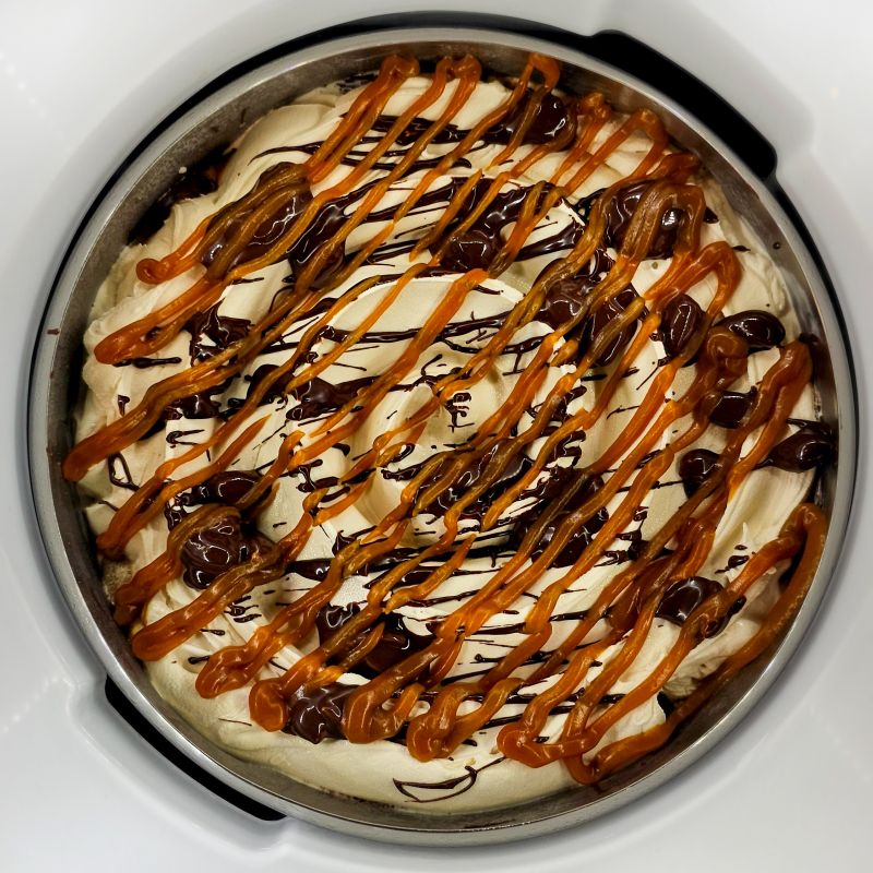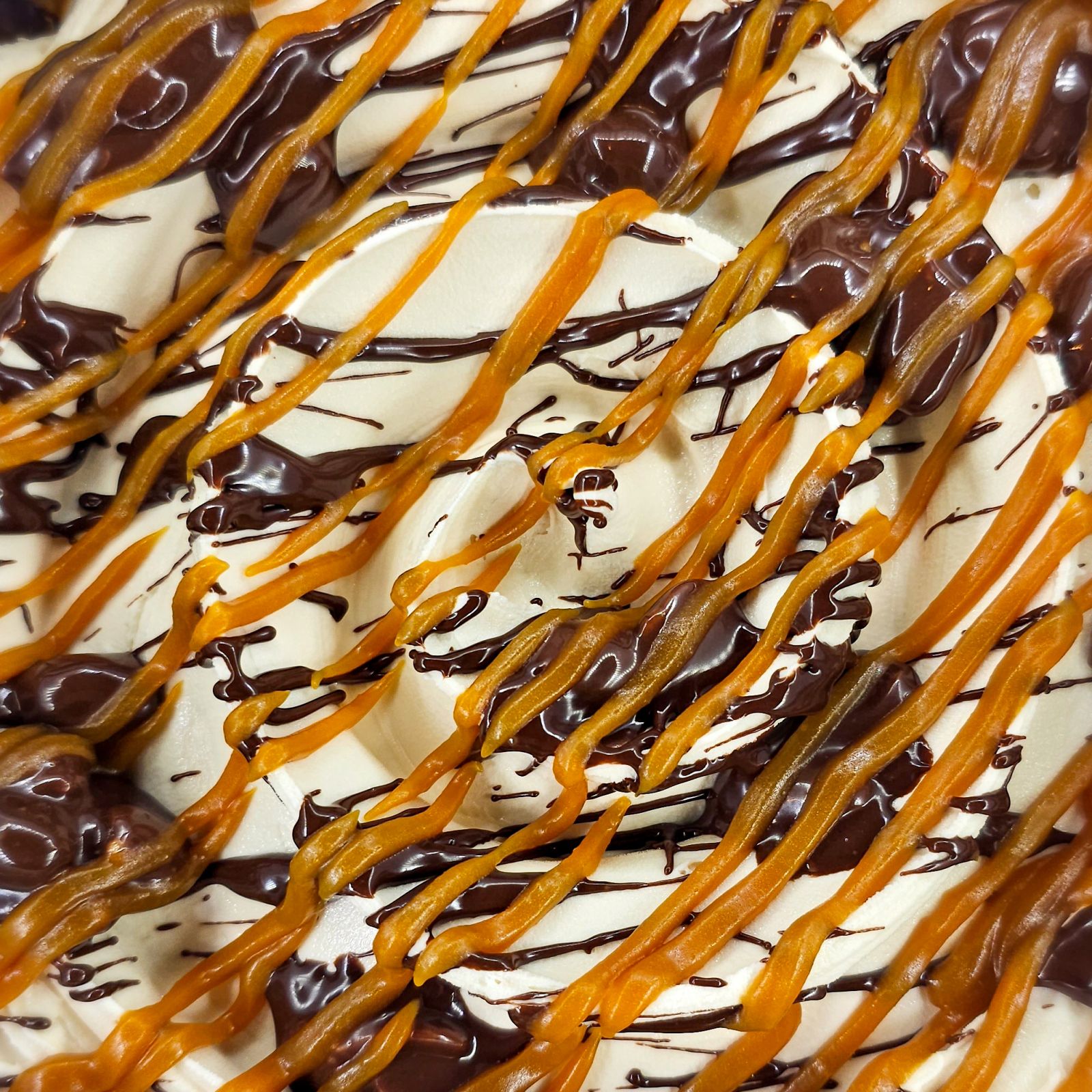 Helado con maníes tostados y ligeramente salados, salsa de caramelo salado y un delicioso veteado de manís con salsa de chocolate. Una manera intrigante de hacerle cosquillas a tus papilas gustativas.