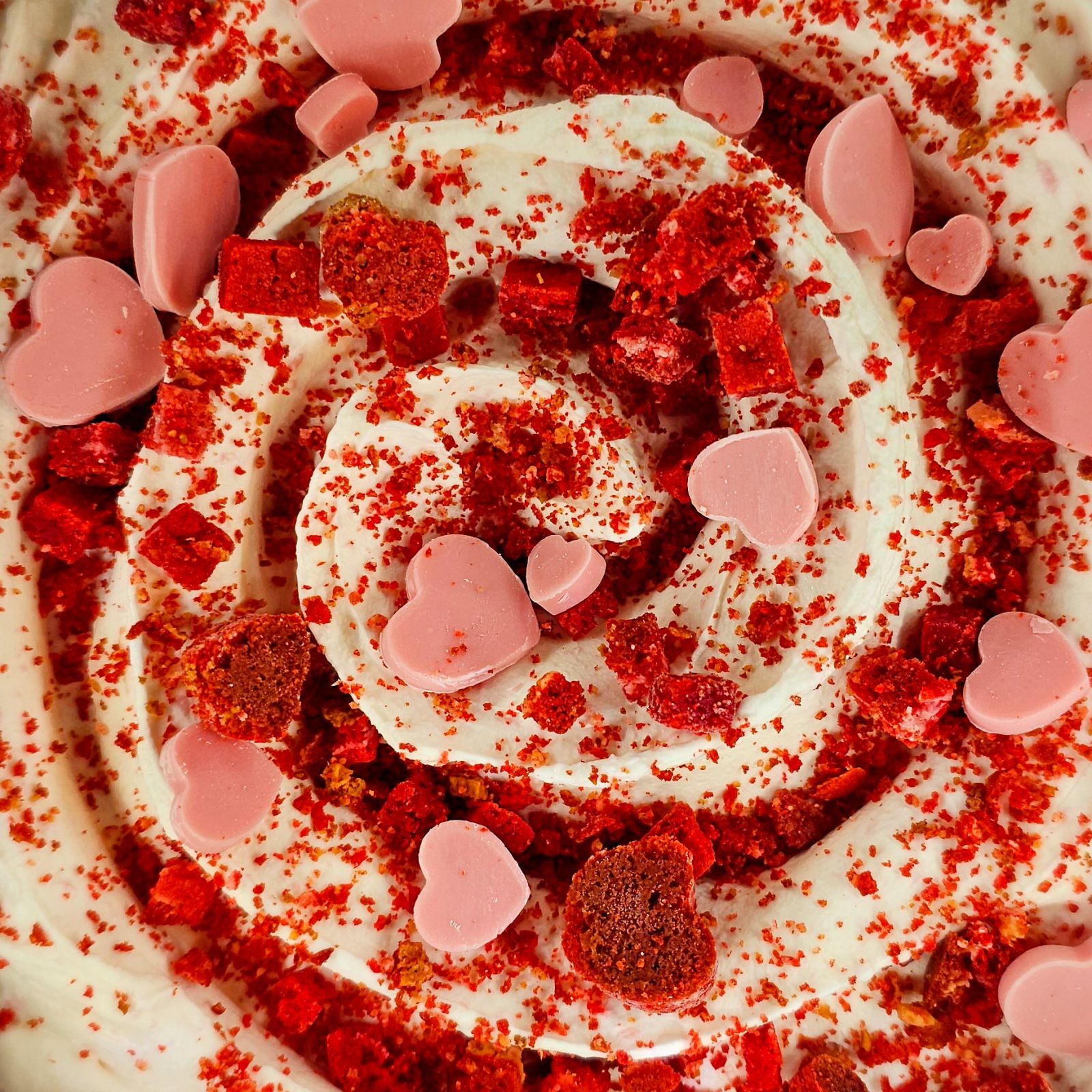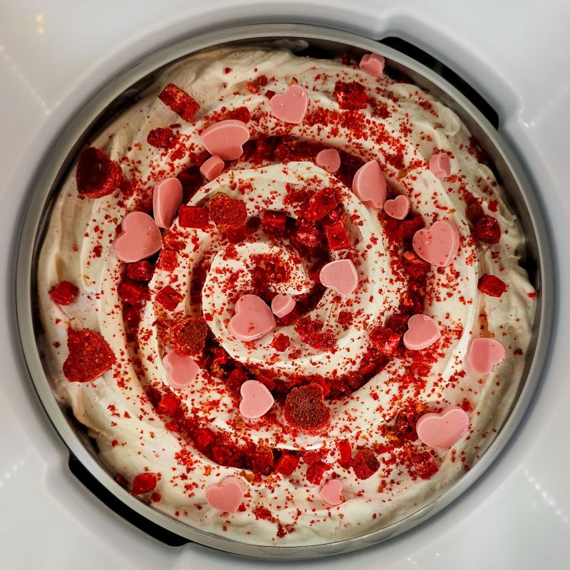 El delicado sabor de la nata se mezcla con el sabor decisivo del philadelphia y el mascarpone, creando una de las mejores bases de queso que habrás probado en tu vida. Un delicado baño de chocolate de fresa acentúa su aterciopelado sabor y, los pequeños trocitos de galleta "Red Velvet", también con sabor a fresa, hacen de este helado una explosión de sabor en la boca.